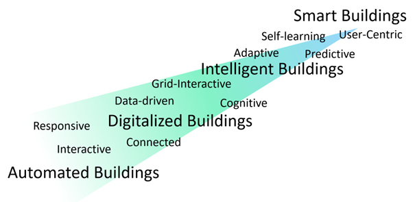 The term “Smart Building” is widely used today, replacing older terms like “Intelligent Building” or “Automated Building.” Although these terms are sometimes used interchangeably, Smart Buildings represent a more advanced stage of development. They go beyond siloed systems and automation, incorporating interoperability, predictive control, and bidirectional communication with both users and external infrastructures (like the energy grids).