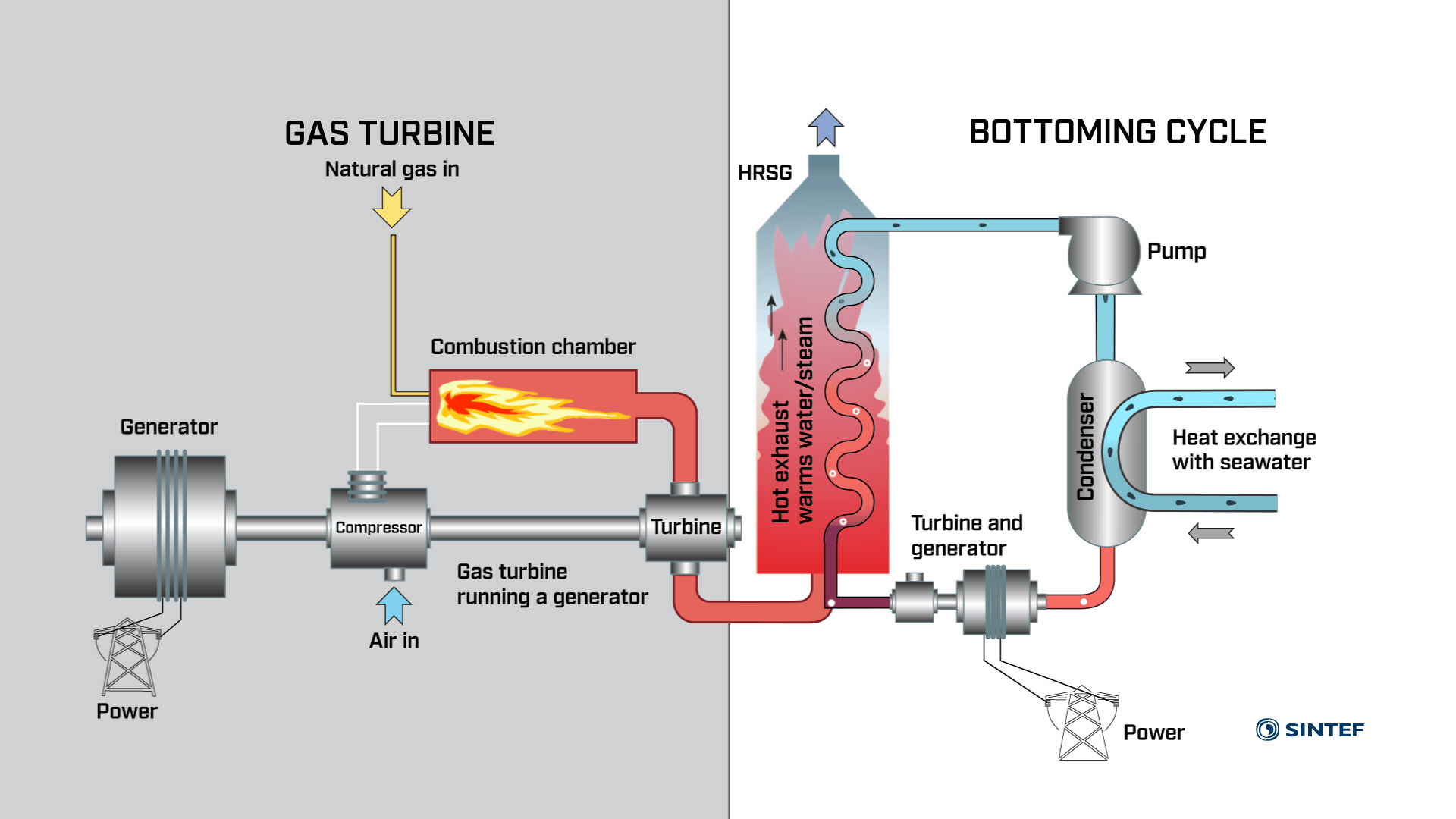 Adding a bottoming cycle to a gas turbine – together called ‘combined cycle’ – can increase the fuel efficiency by 33% and thereby reducing CO2 emissions by 25%.