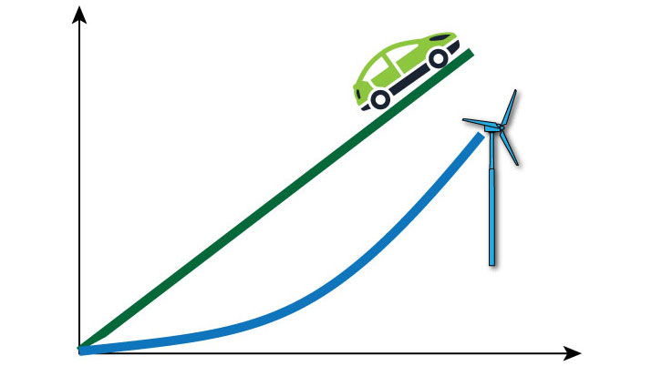 A substantial increase in the use of electric cars on a global scale will require a considerable increase in electric power generation capacity, whereas a substantial increase in fuel cell-driven cars will require a considerable increase in hydrogen production capacity.