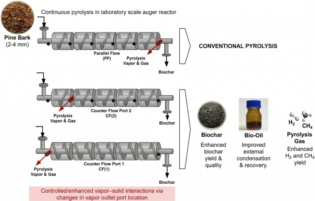 - Chemical Proof: The researchers also noted a distinct increase in the production of hydrogen (H2) and methane (CH4) gases in the CF configurations. High yields of these specific non-condensable gases are strong indicators of intense secondary tar cracking and char carbonization occurring within the reactor.