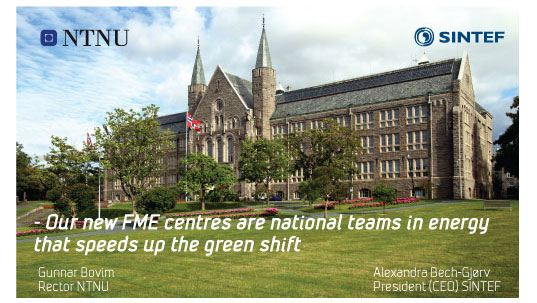 SINTEF was awarded three new Centres for Environmental-friendly Energy Research.